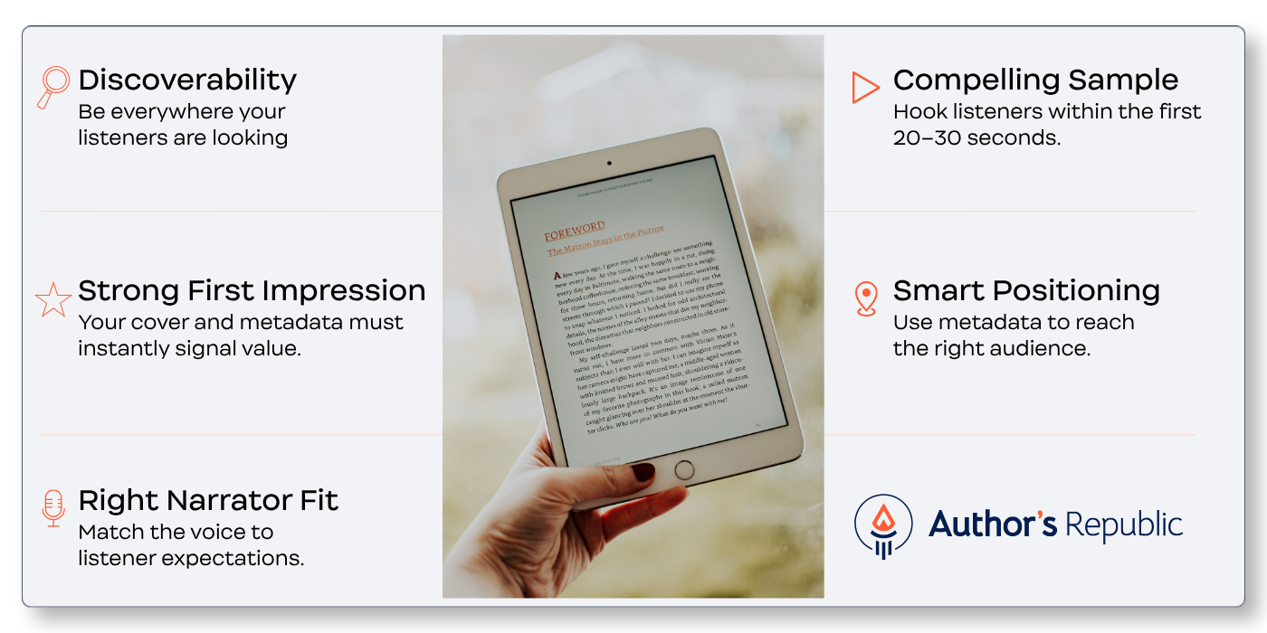 Now that you understand how listeners discover and choose audiobooks, the next step is execution—how to make sure your audiobook delivers at each of these stages.