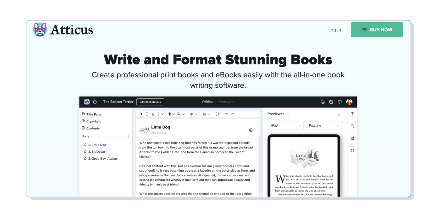 This all-in-one book writing software helps streamline the process of getting your book ready for publication. This includes a built-in writing editor that helps you professionally format your work and optimize the reader experience across different devices.