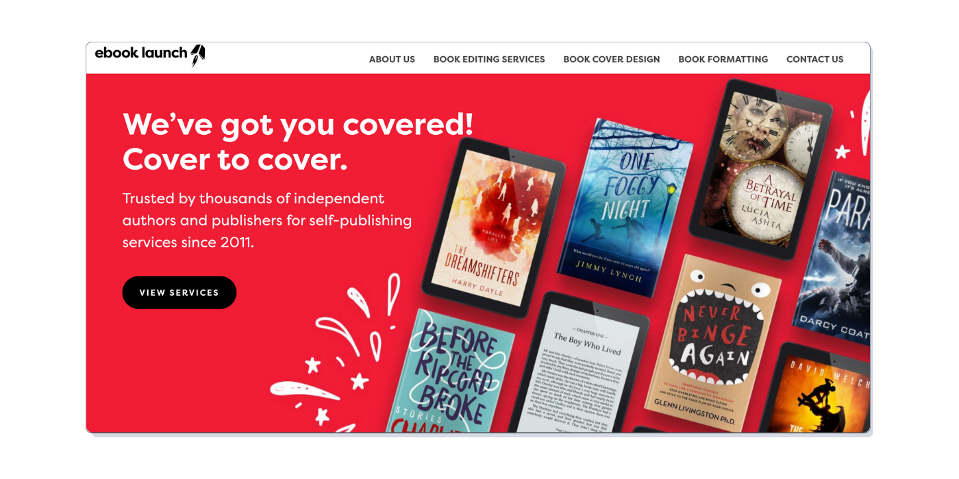 Need a self-publishing service that does it all, from cover to cover? eBook Launch is a great indie author resource that helps with book formatting, editing, and even covers. You can also select packages tailored to what you need and pay only for those services.