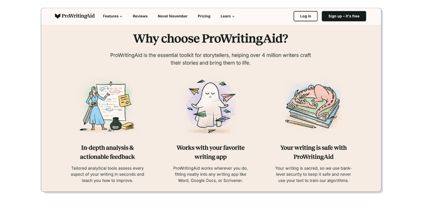 This self-publishing service helps authors with a wide range of needs, including improving readability, enhancing language, smoothing transitions, and more. Whether you’re struggling with grammar, tone, pacing, or character development, ProWriting Aid is likely to have a feature designed to help you meet your goals.
