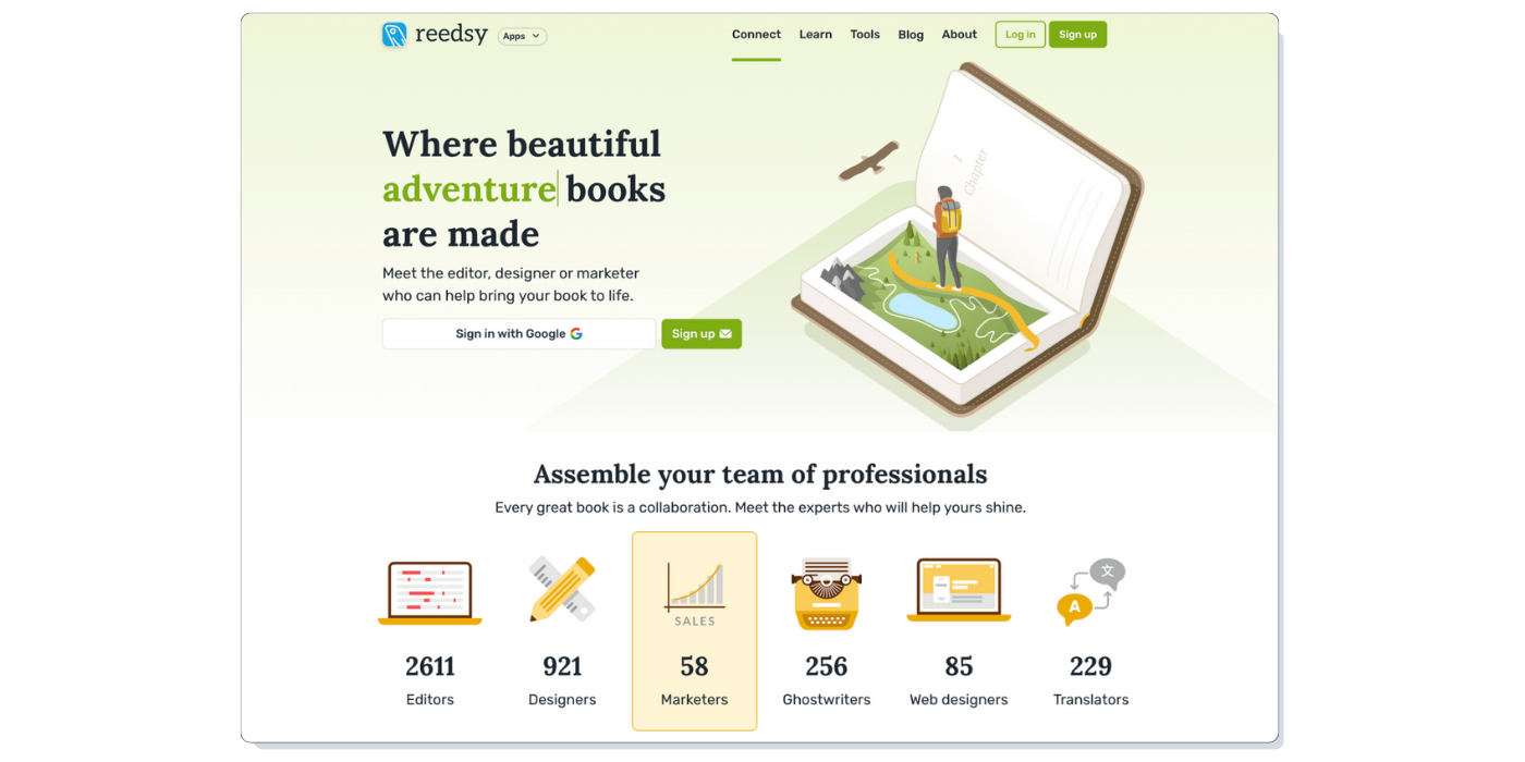 Reedsy is an amazing resource for indie authors that connects you with credible freelancers who can do editing, design, PR, marketing, ghostwriting, and web design. It’s like Fiverr, but just for books. The site also has a service called reedsylearning that offers courses (both paid and free) on writing and publishing for indie authors.