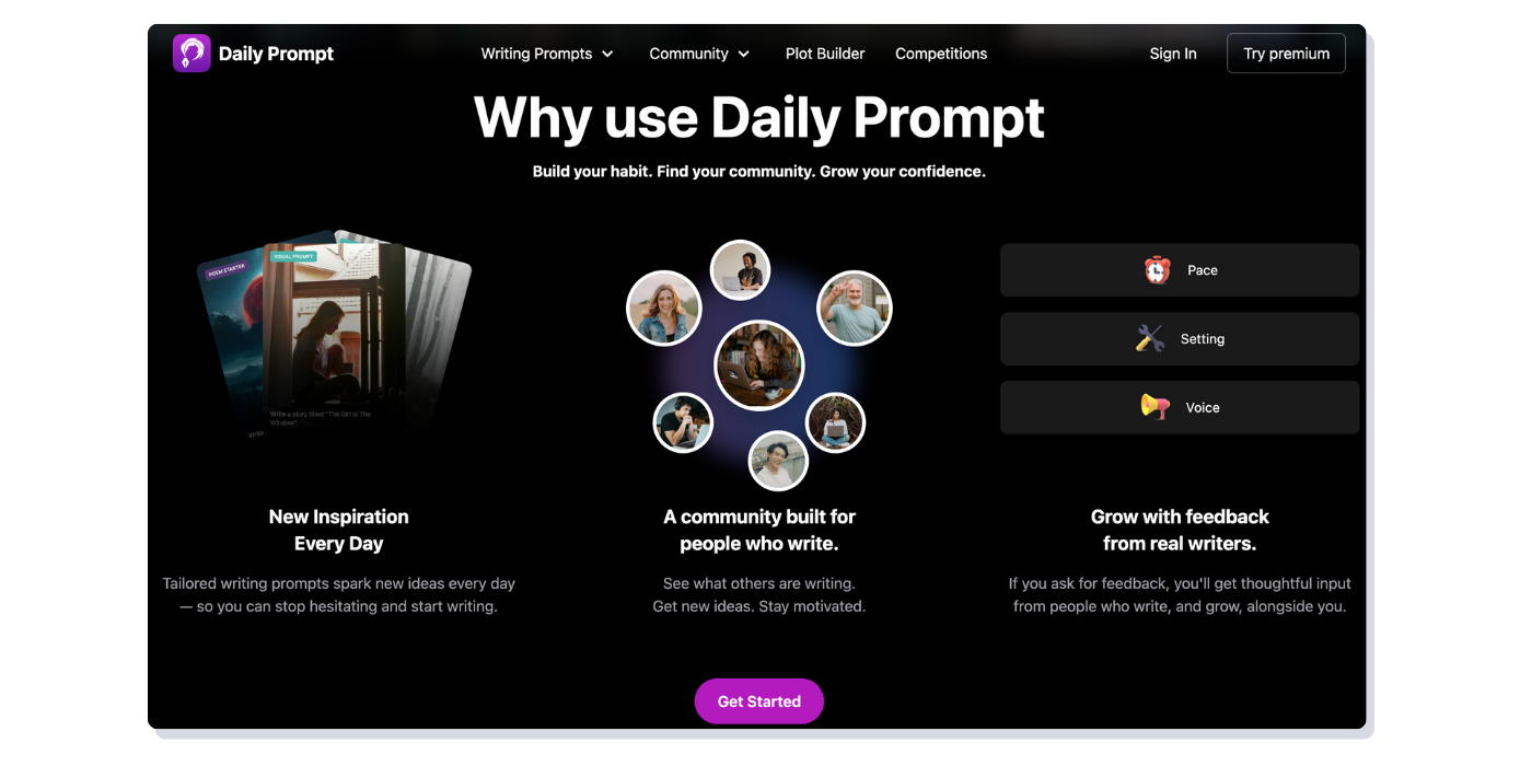 If blogs aren’t really your thing, but you’d still like help with starting your writing practice, Daily Prompt is for you. You can take part in their daily prompts, or you can choose one based on a genre in their prompt catalog. Their prompts are updated frequently and range from common tropes to unexpected, out-of-the-box ideas to help you develop range.