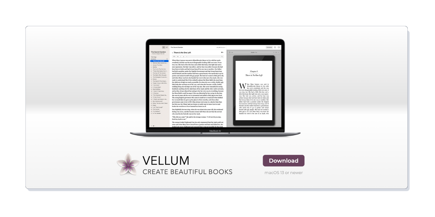 This piece of Mac software helps authors create, design, and style professional-looking print books and eBooks for platforms including Kindle, Apple Books, and more.